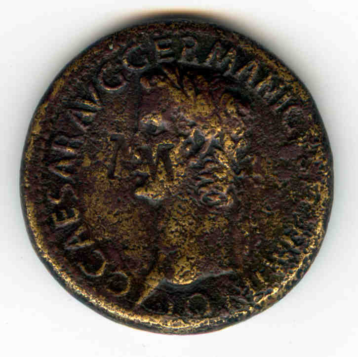 "TIB CLAIMP" in ligature on Germanicus As of Caligula, the countermark is from Claudius (countermark Martini Pangerl Collection 51)