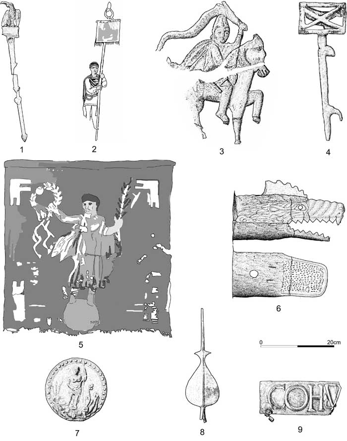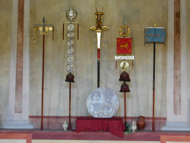 a lance by a square piece. It was carried by cohorts and alae when the