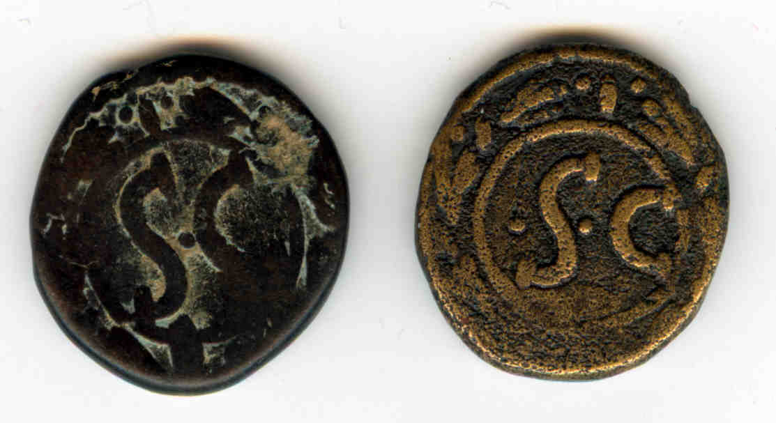 The debate whether the "IMPAVC" or the "CAESAR in ligature" countermarks belong to the Tiberian period or to Caligula is so far undecided. (both can be found in the Augustus Moneyer Countermark Section