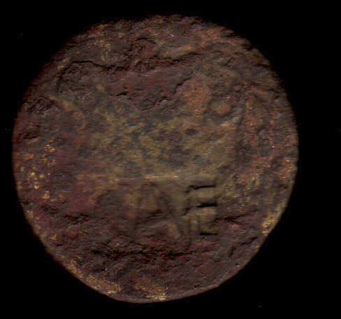 Crude imitation countermark "CAE" on imitation Dupondius of