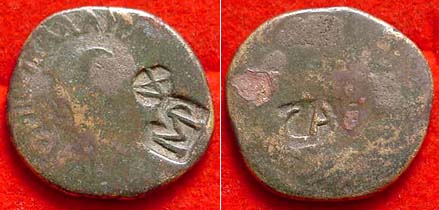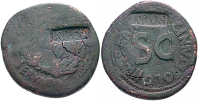 imitation countermarks on imitation As (above) and Sestertius (below)