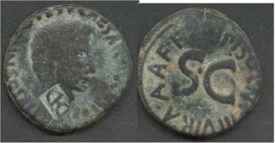 for "AVC" on reverse of Augustus moneyer As, Pannonia