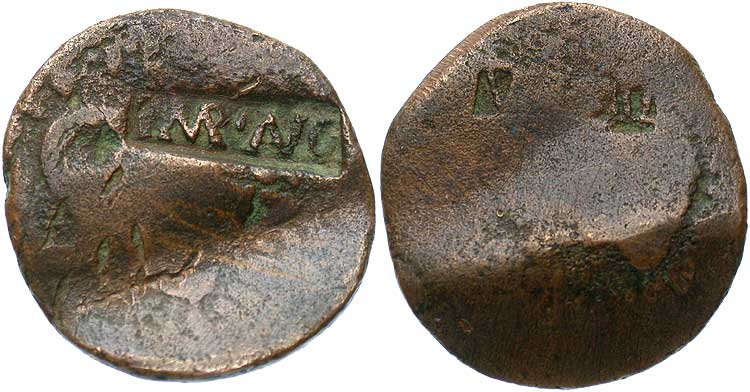an modern fake TI*C*A* countermark on an ancient moneyer As of