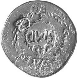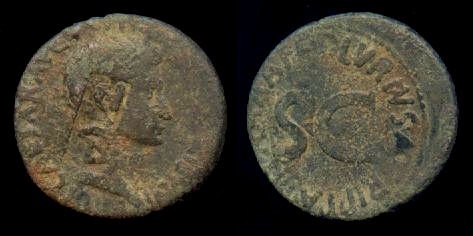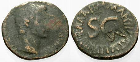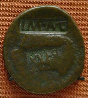 "TIB AVC" on Drusus Junior As (AD 22-23), the youngest coin