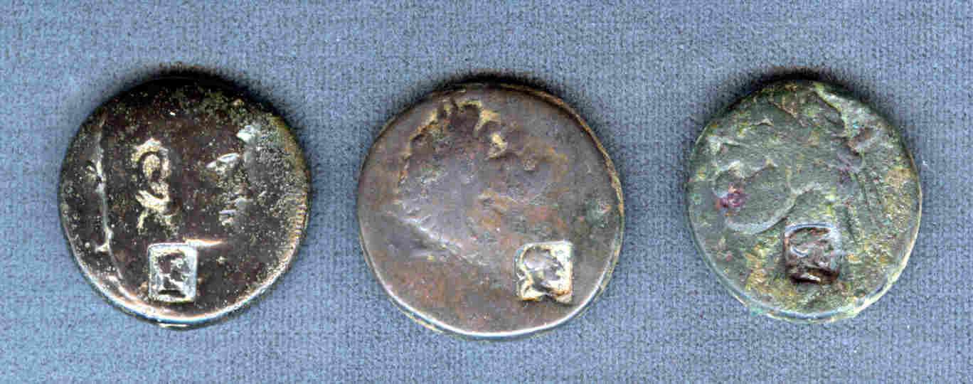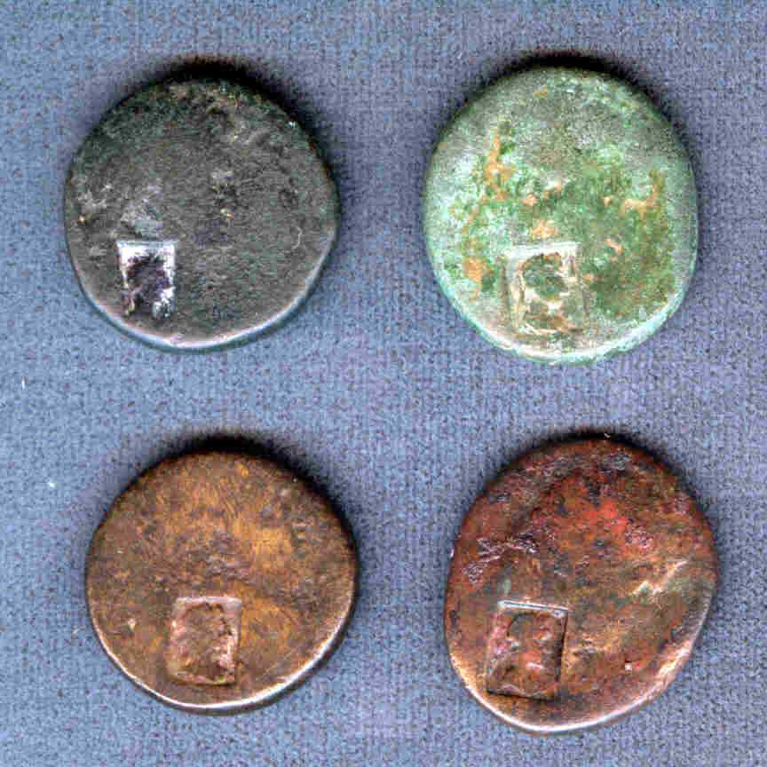 Obverse: The obverse shows three countermarks, two struck on the coins