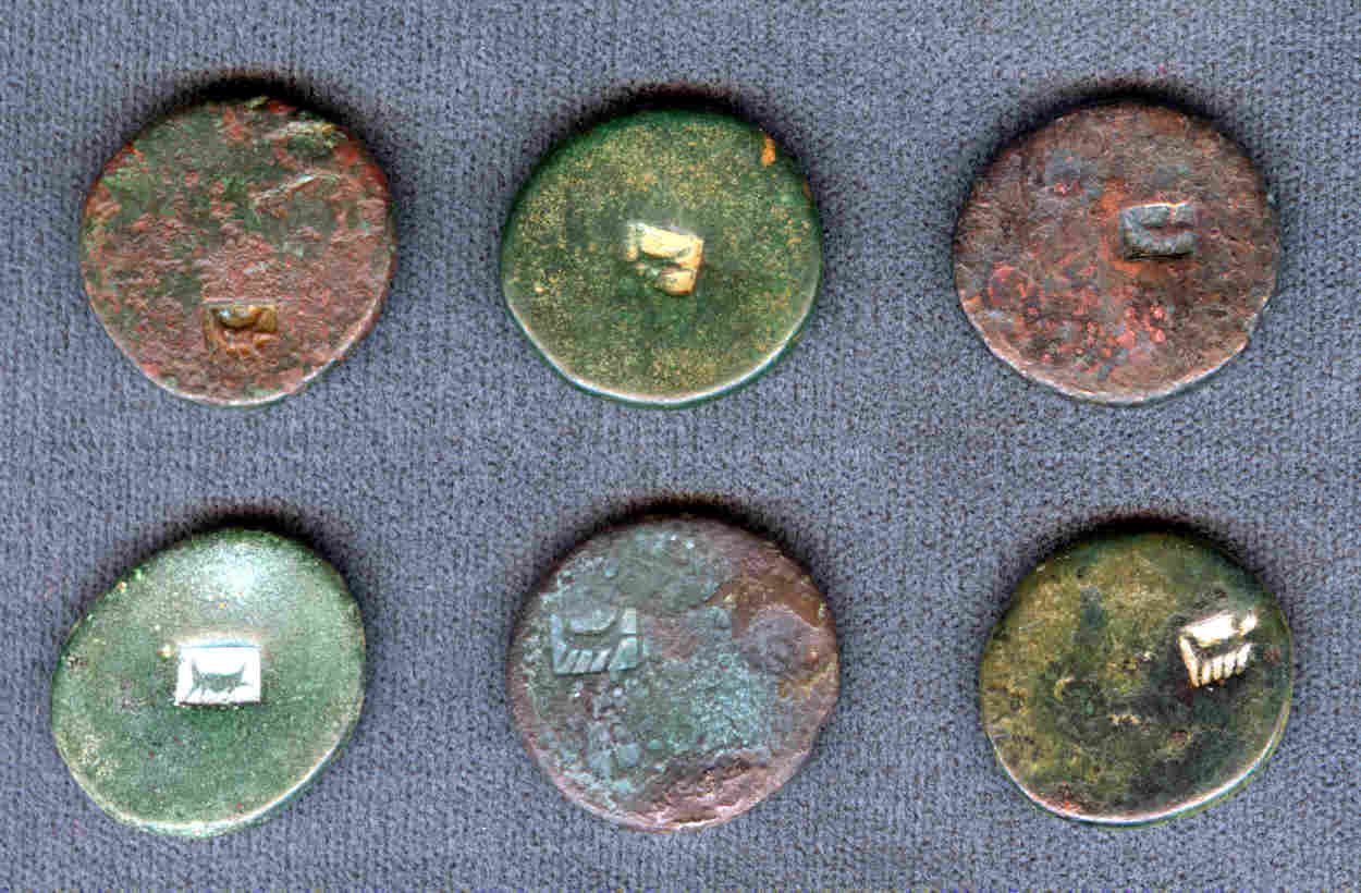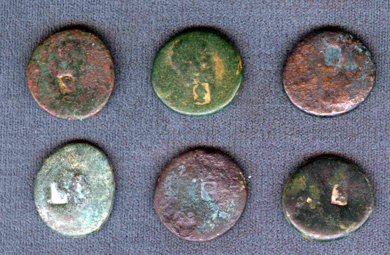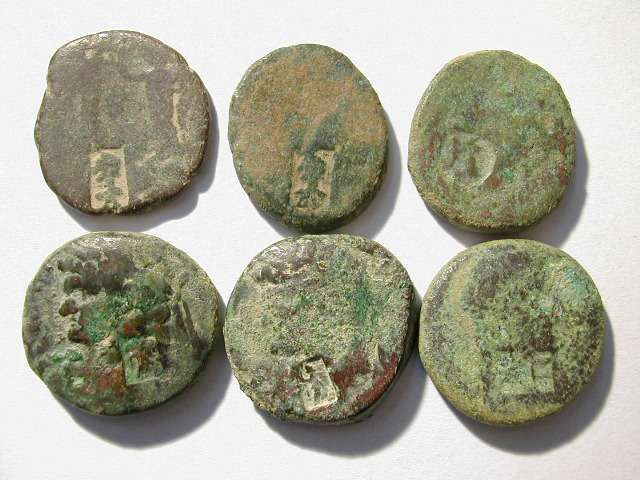 Here are 6 examples of the "Galley'' countermark. From left to right,