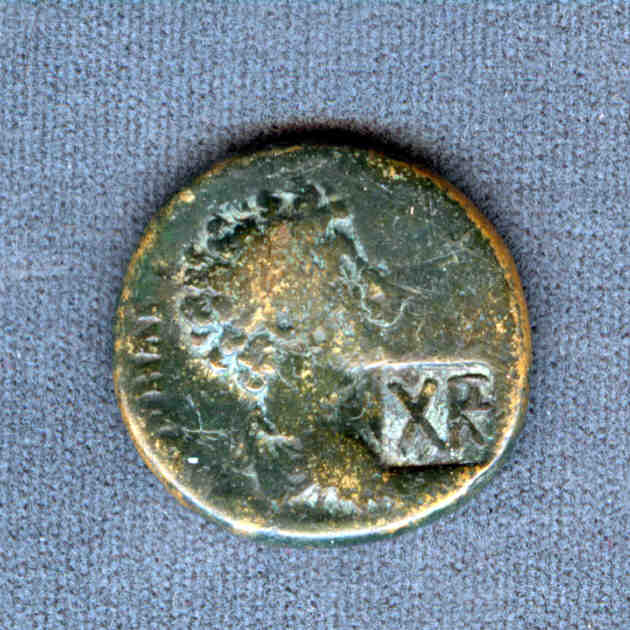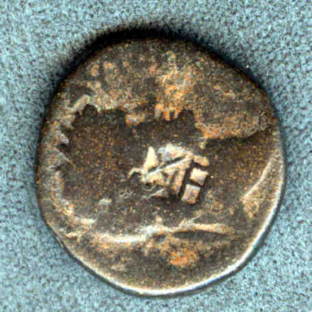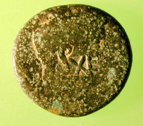 Of the Legio X Fretensis there are multiple different countermarks (e.g. LXF, XFR, XF, X, LXF above boar, galley, head of Emperor), sometimes on the same coin. This legion was based in Jerusalem. The LEGIO X FRETENSIS acquired its nick name, Fretensis, from the famous naval battle of 36 B.C.where the Tenth Legion under the command of Marcus Agrippa destroyed the forces of Sextus Pompey off the coast of Sicily. The nick name is taken from "Fretum Siculum", which loosely translates to the Straits of Sicily, which were located off the Cape of Naulocus, where the naval engagement occured. The galley and the dolphin in some of the countermarks of this legion refer to its Naval victories.