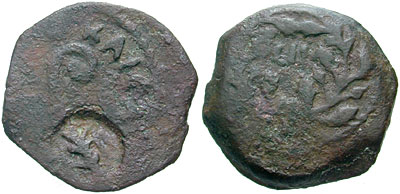 on a prutah AE coin of the procurator Pontius Pilatus (yes, the one who