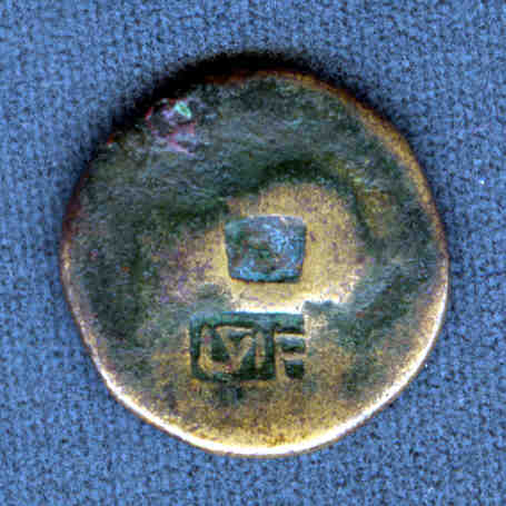 is a large XF struck within a square. 22.5 mm by 23.5 mm, the