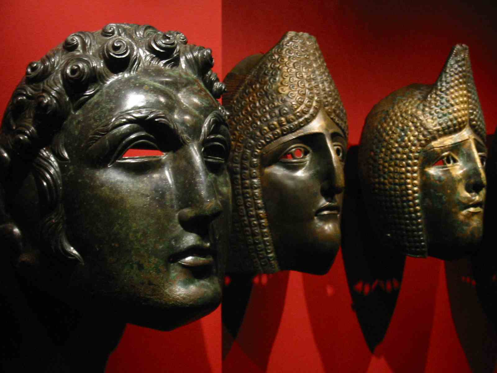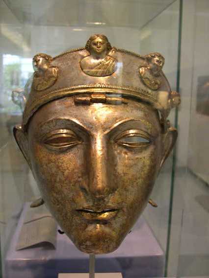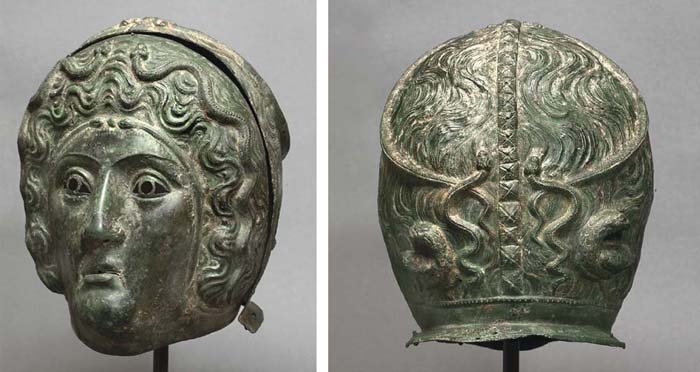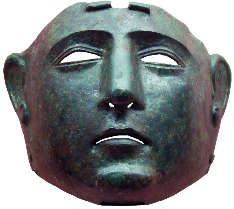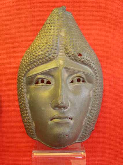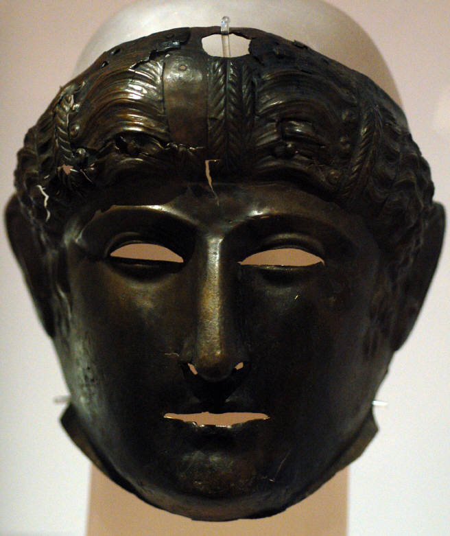 to the right a copy of a Newstead type Face mask (from Edinburg), both