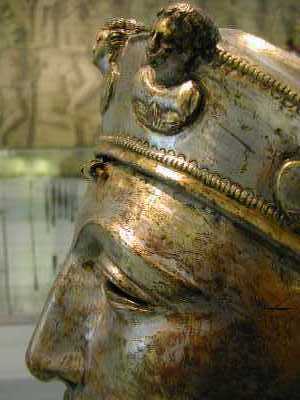 (Sutton Hoo Ship burial, ca 600 AD). The helmet is based on a Spangen