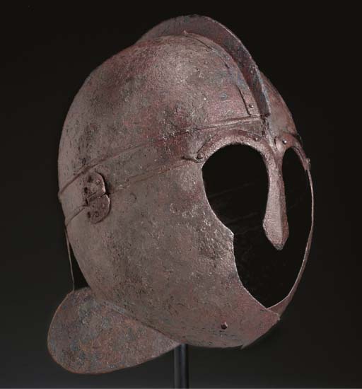 RIDGE HELMET Eastern - maybe Persian - Origin, iron bowl consists of two halves with articulated ridge Berkasovo