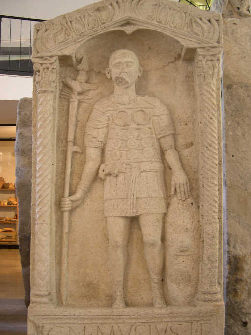 Below grave stone is now in the Bonn Museum. The text reads: