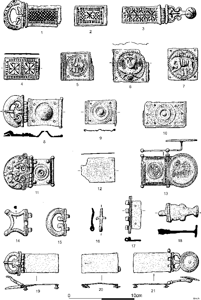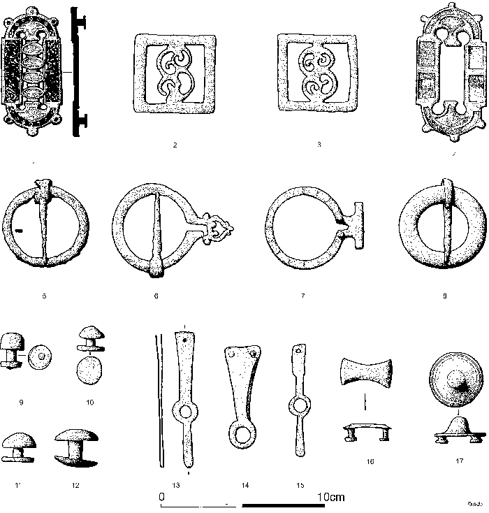 Square and ring belt buckles and fittings, 3rd-4th centrury AD