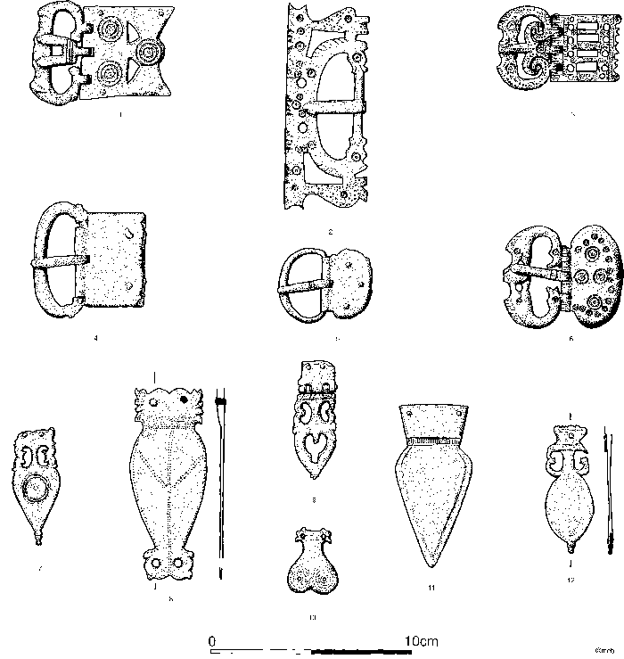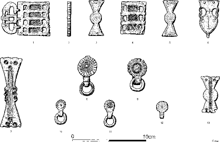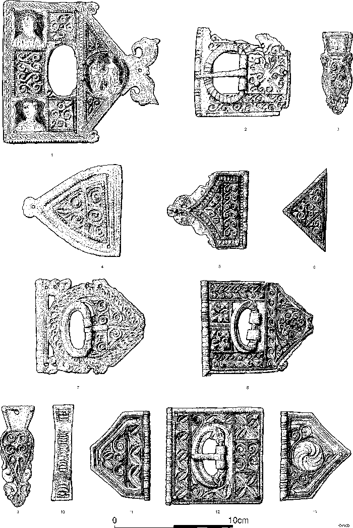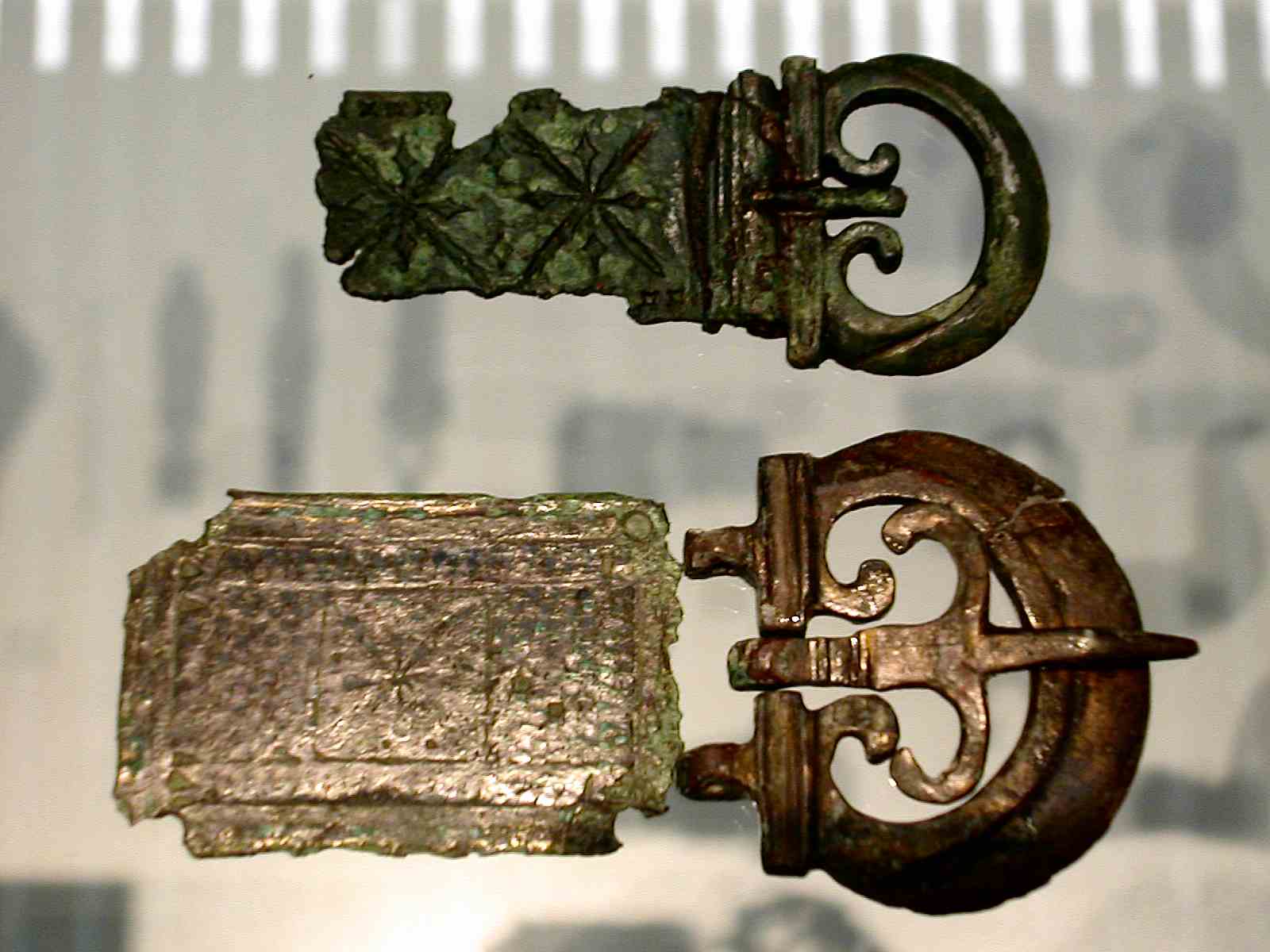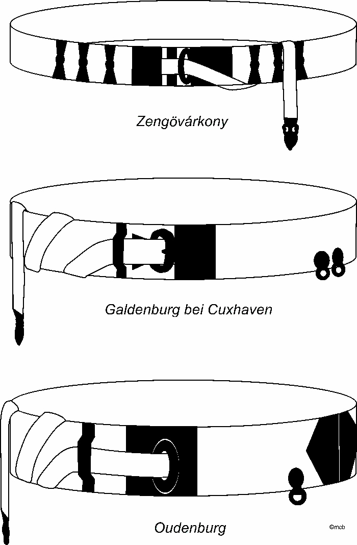 Reconstruction of belts of the fourth/fifth century AD (left),