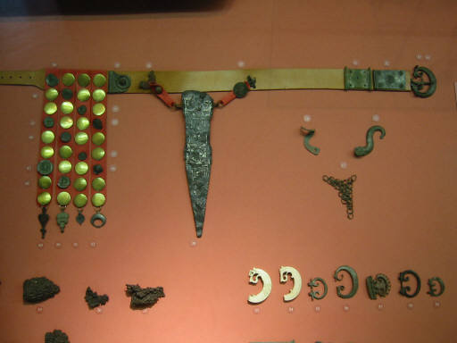 Below a first - second century AD soldier`s belt, the cingulum, to carry the dagger (pugio). The short sword (gladius) was usually carried using a thin leather belt over the shoulder, the so-called balteus. See also in the reconstruction section for examples.