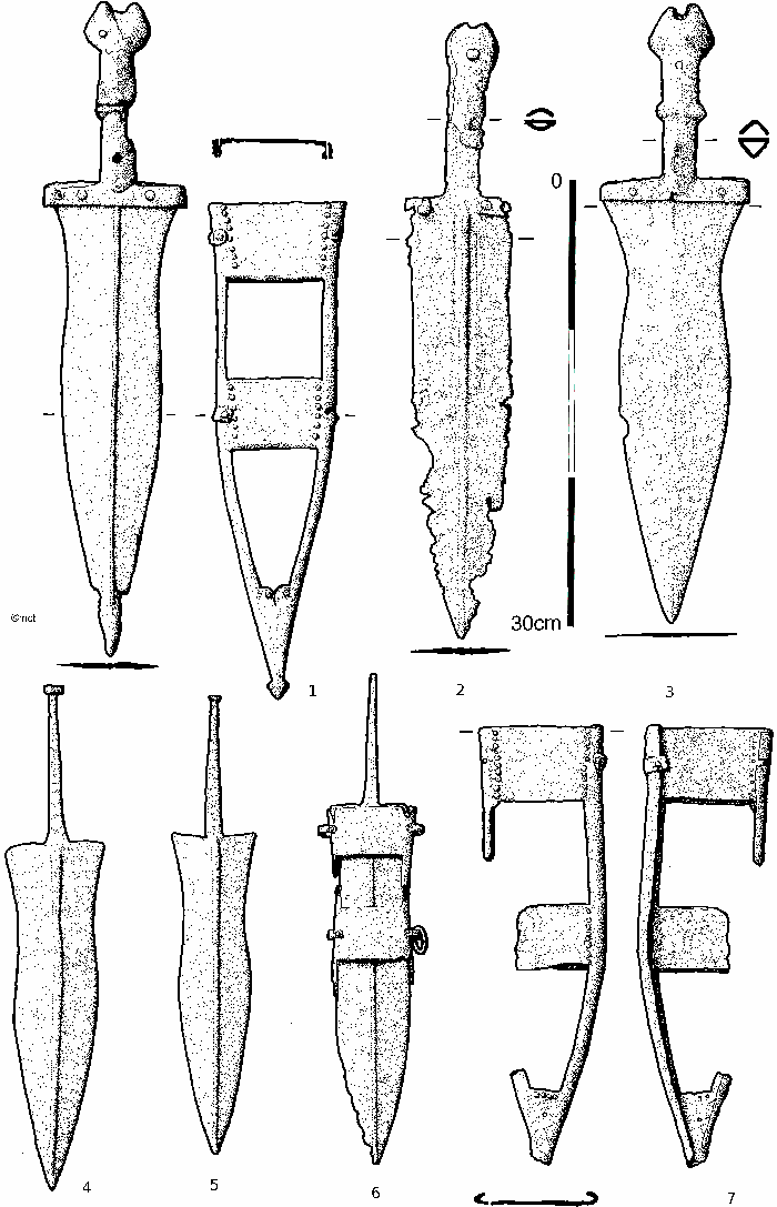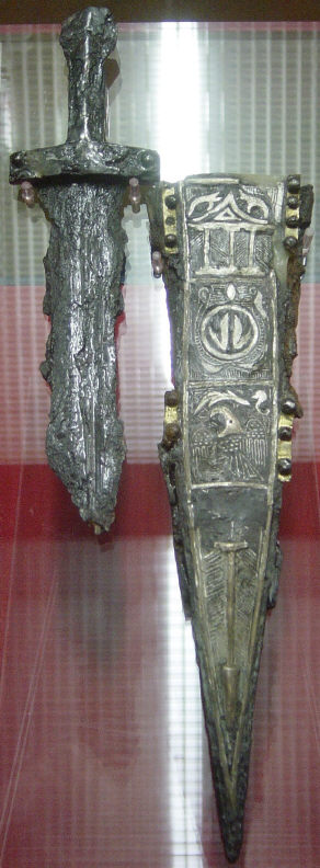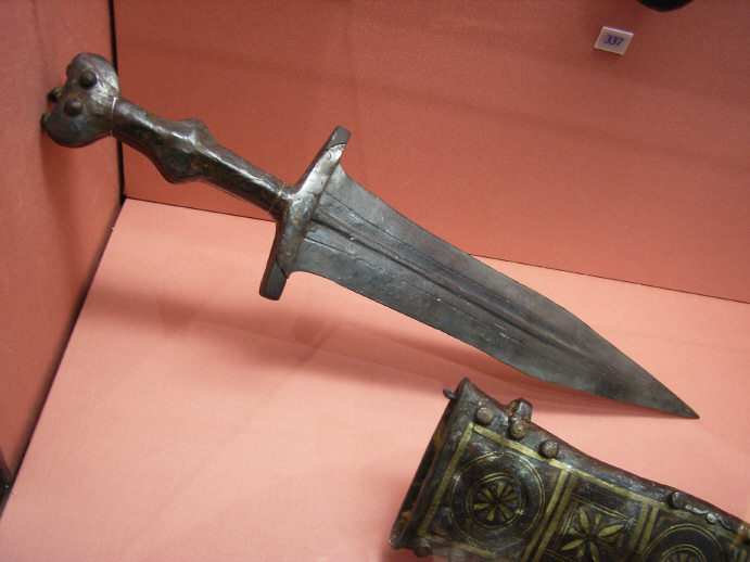 RGZM Mainz, pugios with beautiful silver and brass inlays
