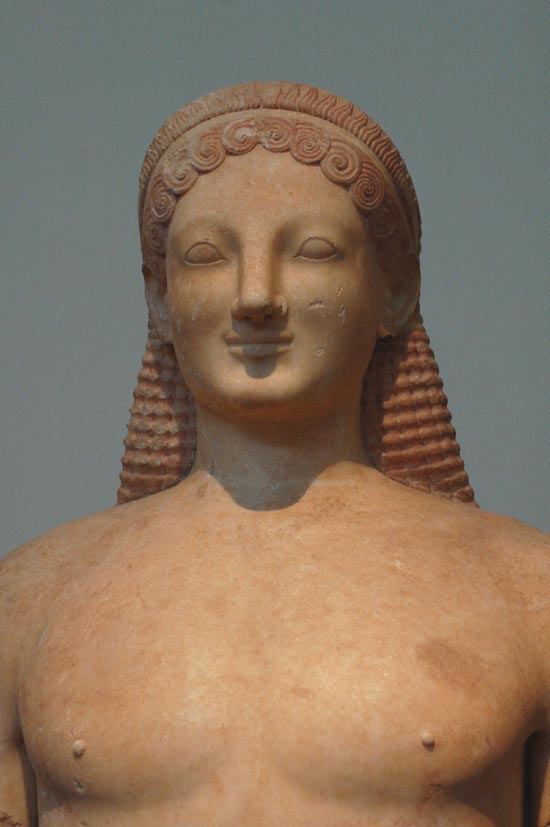 Early greek marble sculpture, a Kuros, National Museum, Athens