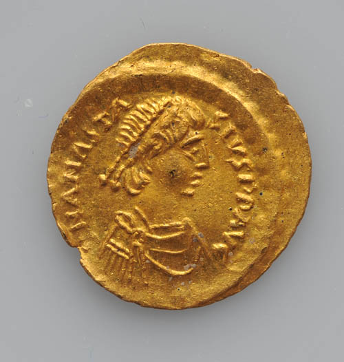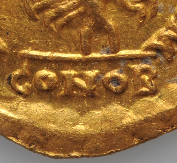 Below a fake Anastasius Tremissis of the same make, using