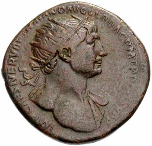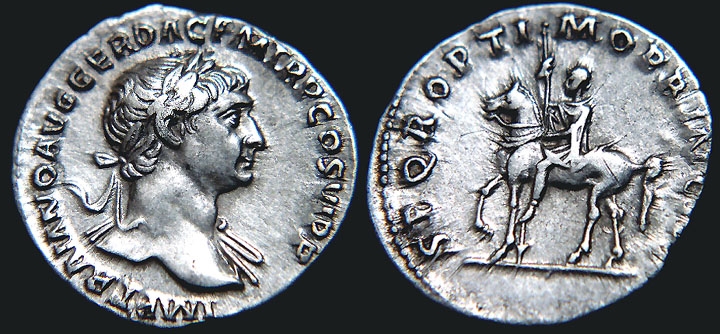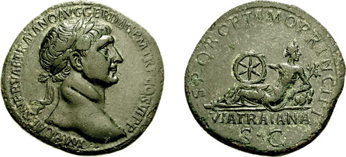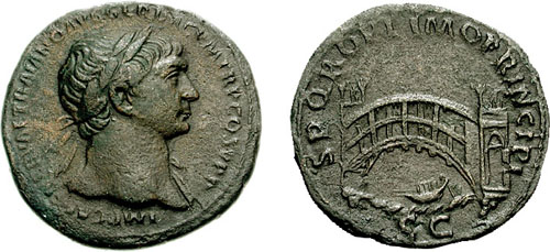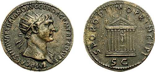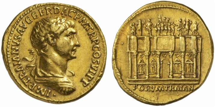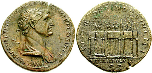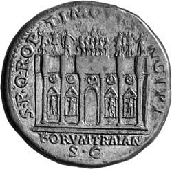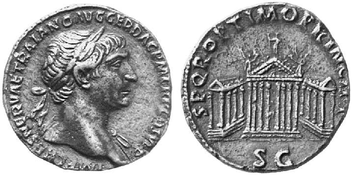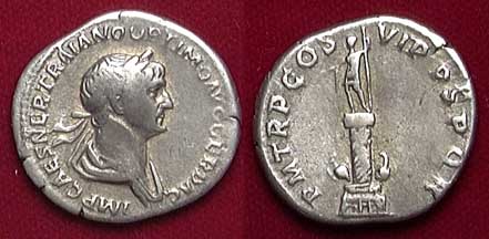 Denarius of Traian, showing the Traian's column in Rome, still standing