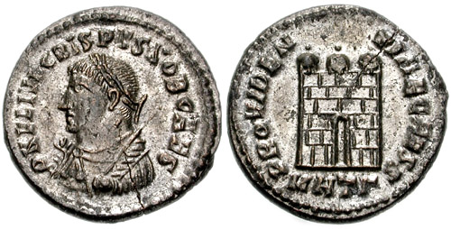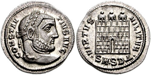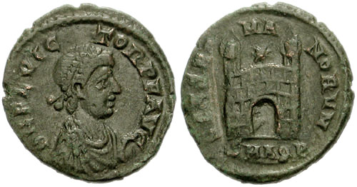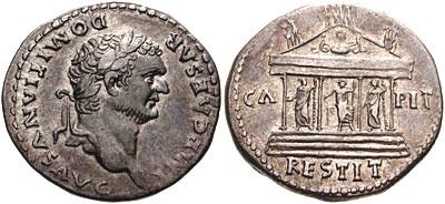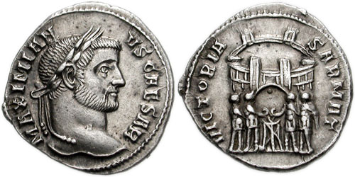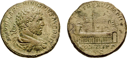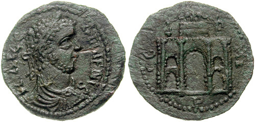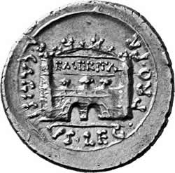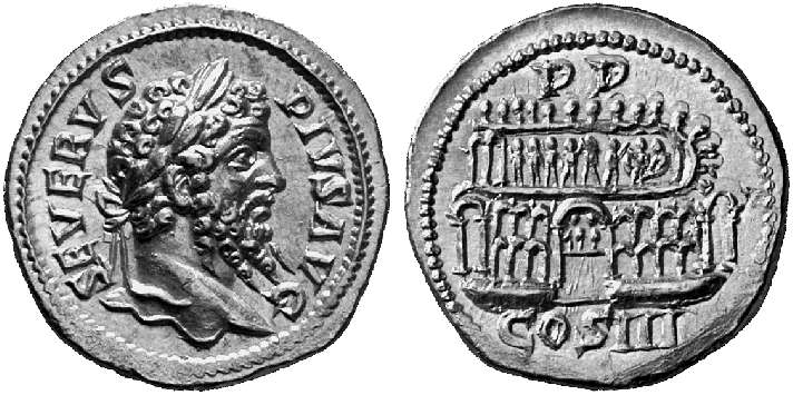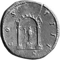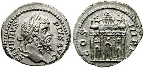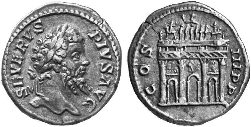 Arch of Septimus Severus on a denarius of the same emperor, standing