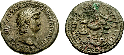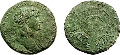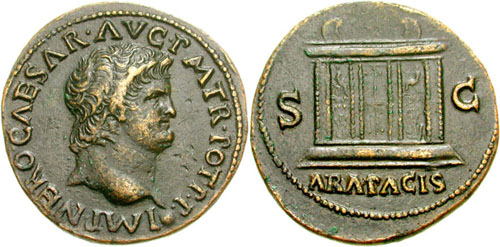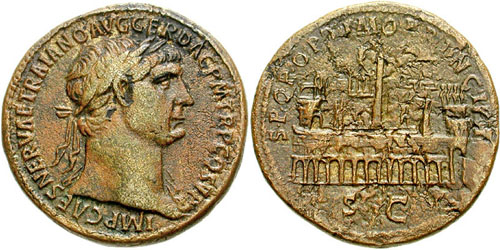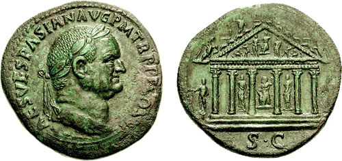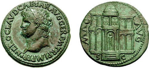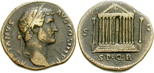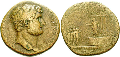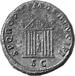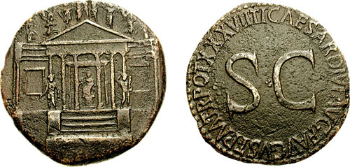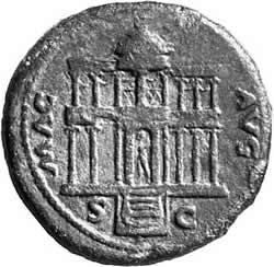 Temple of Janus, the doors closed as a sign of peace (sesterti)