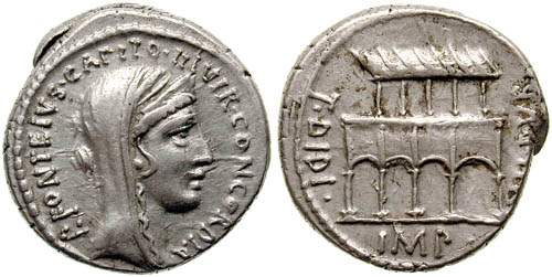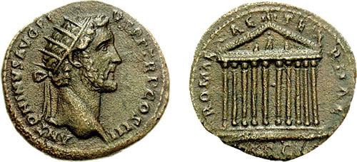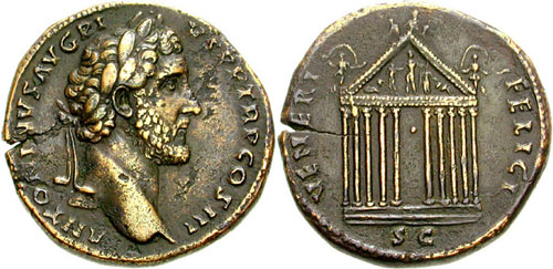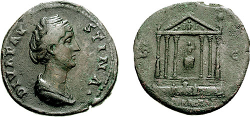 Temple of Diva Faustina (Antoninus Pius, denarius)