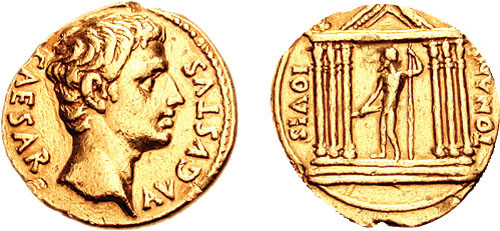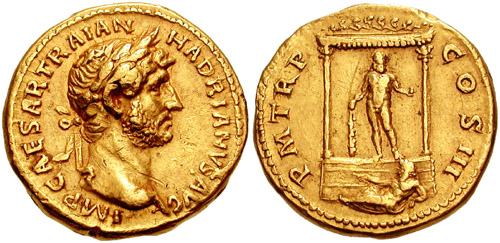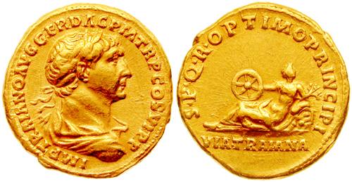 statue on horseback, now in Capitoline Museum, Rome, Aureus