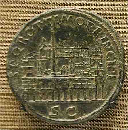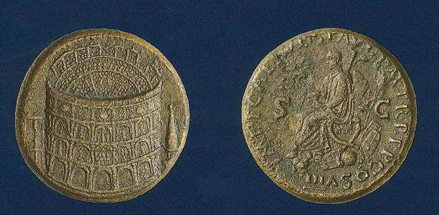 The Colosseum on a sestertius of Titus, note the spectators inside