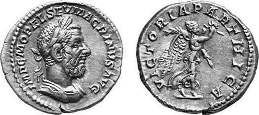 right: VICTORIA PARTHICA (denarius, Septimius Severus, 196/197 AD)