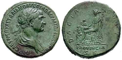 horseback, below mourning Dacia "PROVINCIA DACIA" (As, Sestertius,