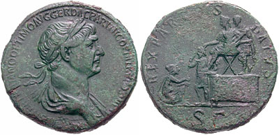 REX PARTHIS DATUS (sestertius, Trajan in Persia, 116 / 117 AD)