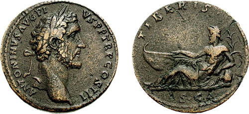 Nilus (denarius of Hadrian, his lover Antinous drowned in the river Nile)