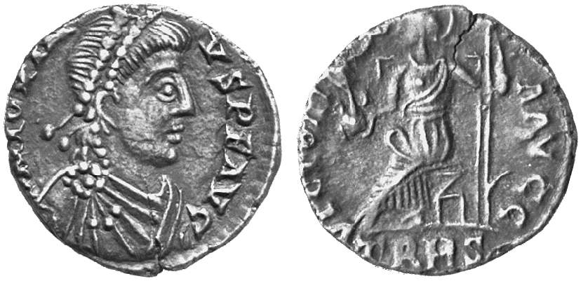 son of Magnus Maximus (387-388 AD), Western Empire, Siliqua (left) and