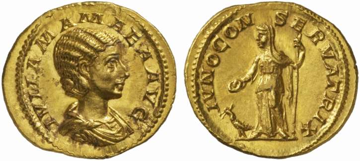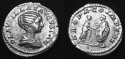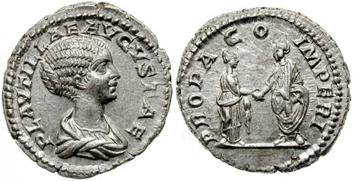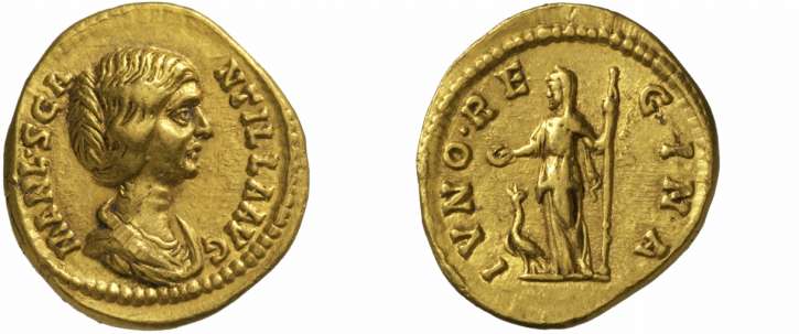 wife of Elagabal, and former Vestal Virgin, divorced 221 AD
